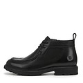 Чёрные демисезонные ботинки выполнены из натуральной кожи. Подкладка и стелька - из ворсина, гарантирующего надежную защиту стоп от холода.. Модель с рельефным швом вдоль мыса установили на широкую подошву из резины.