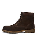 Актуальные коричневые ботинки в стиле тимберлендов. Верх выполнен из бархатистого спилка, ворот укреплен прочной КРС. Шерстяная стелька обеспечивает оптимальную теплоизоляцию. Утолщенная резиновая подошва с выраженными протекторами отличается прочностью и хорошим сцеплением с поверхностью.