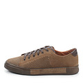 Светло-коричневые кеды с темными вставками подойдут для активного отдыха. Изготовлены из нубука и кожи КРС, для нормального воздухообмена и в качестве украшения предусмотрена сквозная перфорация. Пара завязывается на шнурки. Толщина полиуретановой подошвы – 25 мм.