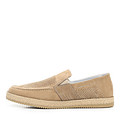 Слипоны – неформальный фасон обуви, их нельзя надеть в сочетании с классическими вещами, зато они подарят комфорт в любой, кроме официальной, обстановке. Модель выполнена из нубука и натуральной кожи приятного бежевого цвета, имеет перфорацию и резинки, обеспечивающие плотное прилегание к ноге. Подошва из термоэластопласта – прочного, гибкого, стойкого к истиранию, материала.