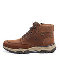 Рыже-коричневые треки из натуральной кожи – это комфортная модель, незаменимая на длительных пеших прогулках, в поездках. Подкладка выполнена из шерсти с мембраной RiekerТех, которая поддерживает постоянную температуру внутри обуви и предотвращает скапливание лишней влаги. Пара на плотной массивной подошве бежевого цвета. Верх обуви фиксируется черной шнуровкой.