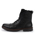 Мужские черные ботинки из натуральной и искусственной кожи с меховой отделкой. Войлочная стелька обеспечивает комфорт стоп. Шнуровка надежно фиксирует пару на ноге. Модель дополнена удобной застежкой на молнию. Рифленая подошва из резины гарантирует хорошее сцепление с поверхностью.