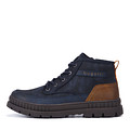 Тёмно-синие ботинки выполненные из искусственной кожи. Модель декорирована тёмно-коричневым верхом на каблуке и нашивкой с логотипом. Массивная подошва из материала ТЭП прочна и обеспечивает хорошее сцепление.