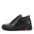 Черные мужские кожаные кеды с верхом из натуральной кожи. Подкладка выполнена из ворсина, стелька изготовлена из текстиля. Гибкая подошва из материала ТЭП обеспечивает отличное сцепление и хорошую устойчивость на любых поверхностях. Модель со шнуровкой, застежкой на молнию и утолщенным воротом.