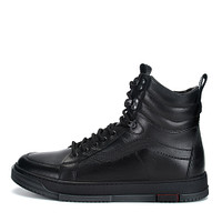 Футуристичные высокие кеды в трендовом цвете хаки. Верх комбинирует ворсистые фактуры прочного спилка и плотного нубука. Шерстяная стелька обеспечивает комфортную терморегуляцию стоп. Широкая подошва из ТЭП отличается легкостью, морозоустойчивостью и хорошим сцеплением с поверхностью. Модель фиксируется шнуровкой и удобно застегивается на молнию.