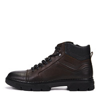 Базовые черные ботинки на холодный сезон. Верх комбинирует гладкую и зернистую натуральную кожу. Ворот бережно поддерживает зону щиколоток. Шерстяные подкладка и стелька обеспечивают комфортную терморегуляцию стоп. Утолщенная подошва из материала ТЭП с выраженными протекторами отличается легкостью, морозоустойчивостью и хорошим сцеплением с любой поверхностью.