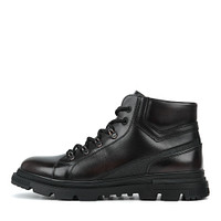 Мужские ботинки чёрного цвета выполнили из комбинации натуральной 85% и искуственной 15% кожи. Пара с усиленной шнуровкой и мягким воротом, который бережно поддерживает щиколотки. Внутренняя подкладка из натуральной шерсти удерживает тепло и сохраняет ноги в комфорте. Подошва из материала ТЭП, не проскальзывает и не деформируется, обеспечивая стабильность при ходьбе.