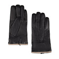 Перчатки осенние мужские выполнены из черной натуральной кожи и натуральной шерсти, очень комфортные и теплые. Перчатки идеально садятся по руке и не сковывают движений. Натуральная кожа мелкозернистой фактуры износостойкая, приятно ощущается и не сковывает движений, она очень мягкая и пластичная, не боится перепадов температур, надолго сохраняет первоначальный внешний вид. На перчатках не образуются заломы и трещины, эластичная кожа обладает высокой износостойкостью, но следует избегать воздействия на нее воды. Перчатки утеплены подкладкой из натуральной шерсти бежевого цвета, которая обеспечивает оптимальный воздухообмен и влагоотведение, сохраняет руки в тепле. На лицевой стороне расположены декоративные фигурные строчки, придающие модели выразительность. Благодаря универсальному черному цвету перчатки подходят практически к любому гардеробу, сочетаются с курткой, пальто или утепленным пиджаком. Перчатки теплые мужские придают образу солидность, прекрасно гармонируют с классической или спортивной обувью. Перчатки осенние отлично подходят для прогулки или поездки, в них можно отправиться на встречу с друзьями или любое мероприятие на открытом воздухе. Перчатки кожаные мужские демисезонные придутся по душе школьнику подростку. Оригинальный дизайн и безупречное исполнение делают перчатки осенние базовым аксессуаром мужского гардероба.