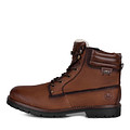 Стильные коричневые ботинки в стиле тимберлендов. Материал верха - комбинация натуральной и искусственной кожи. Подкладка выполнена из шерсти с мембраной RiekerТех, которая поддерживает постоянную температуру внутри обуви и предотвращает скапливание лишней влаги. Войлочная стелька гарантирует тепло стоп. Утолщенная резиновая подошва отличается прочностью и надежным сцеплением с поверхностью.