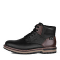 Лаконичные черные ботинки на каждый день. Материал верх - комбинация натуральной и искусственной кожи. Подкладка утеплена шерстью, а стельки - войлоком. Утолщенная резиновая подошва отличается прочностью и надежным сцеплением с поверхностью. Модель быстро фиксируется на ноге молнией.