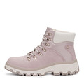 Лаконичные розовые ботинки в стиле тимберлендов. Материал верха - современная искусственная кожа, устойчивая к истиранию. Текстильный ворот бережно поддерживает зону щиколоток. Подкладка и стелька обеспечивают комфорт стоп в процессе носки. Высокая подошва из материала ТЭП отличается легкостью, гибкостью и хорошим сцеплением.