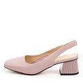 Очень женственные и нежные открытые туфли – модель, которая гармонично дополнит романтический образ. Пара выполнена из кожаного спилка, подкладка и стелька – кожаные. Тонкая резиновая подошва смотрится аккуратно, не скользит на влажных поверхностях. Особое очарование модели придает невысокий (5 см) массивный каблук интересной формы. Слегка удлиненный носок визуально стройнит стопу.