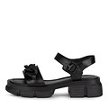 Черные кожаные босоножки на массивной подошве. Подкладка выполнена из натуральной кожи, обеспечивающей комфорт даже при длительном контакте обуви с обнаженной ступней. Летние босоножки также дополнены декором с цепочкой, который добавляет паре изюминку.