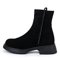 Стильные черные ботинки из мягкого ворсистого спилка. Модель с утепленной подкладкой и стелькой, изготовленными из натуральной шерсти. Высокая подошва из резины отличается прочностью, не боится влаги и гарантирует хорошее сцепление с любой поверхностью. Ботинки дополнены удобной застежкой на молнию.
