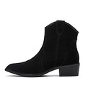 Актуальные черные ботильоны в стиле казаков. Верх выполнен из бархатистого спилка с декоративной строчкой. Пара утеплена мягким ворсином. Утолщенная резиновая подошва отличается прочностью и хорошим сцеплением с поверхностью.