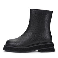 Минималистичные коричневые ботинки. Верх выполнен из бархатистого спилка. Подкладка и стелька утеплены натуральной шерстью. Утолщенная бежевая подошва из резины отличается прочностью и хорошим сцеплением с любой поверхностью.