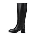 Минималистичные черные кожаные сапоги с широким голенищем. Пара утеплена мягким ворсином. Модель с удобной застежкой на молнию. Эластичные вставки на голенщине гарантируют удобную посадку. Утолщенная резиновая подошва защищает стопы от холода и формирует поддержку. Фигурный каблук обеспечивает равномерное распределение нагрузки.