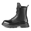 Черные ботинки из гладкой натуральной кожи. Комфорт и оптимальную терморегуляцию стоп гарантируют подкладка и стелька, изготовленные из мягкого ворсина. Плотная рифленая подошва из резины отличается износостойкостью и гарантирует хорошее сцепление с поверхностью. Модель со шнуровкой, позволяющей регулировать посадку обуви, и удобной застежкой на молнию. Пара дополнена лаконичным декором на язычке. Ботинки хорошо дополнят образы с платьями, юбками и укороченными брюками.