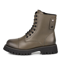 Черные кожаные женские ботинки с высокой шнуровкой в стиле берцев. Верх изготовлен из гладкой натуральной кожи. Подкладка и стелька с утеплением из натуральной шерсти гарантируют исключительный комфорт в любую погоду. Рифленая резиновая подошва обеспечивает устойчивость на любых покрытиях и хорошую защиту стоп от холода. Модель дополнена практичной застежкой на молнию и декоративной вставкой на голенище.