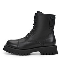 Кожаные женские ботинки с высокой шнуровкой в стиле берцев. Верх изготовлен из гладкой натуральной кожи. Подкладка и стелька с утеплением из натуральной шерсти гарантируют исключительный комфорт в любую погоду. Рифленая резиновая подошва обеспечивает устойчивость на любых покрытиях и хорошую защиту стоп от холода. Модель дополнена практичной застежкой на молнию и декоративной вставкой на голенище.