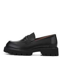 Эффектные черные кожаные лоферы на массивной подошве. Комфорт стоп гарантируют подкладка и стелька, выполненные из мягкой натуральной кожи. Высокая подошва из материала ЭВА поддерживает стопы в оптимальном положении и хорошо амортизирует нагрузку. Лаконичный декор добавляет паре изюминку.