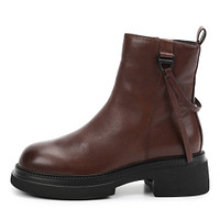 Акцентные черные кожаные полусапоги с застежкой на молнию и декоративным ремешком. За комфорт стоп отвечают подкладка и стелька, выполненные из мягкого ворсина. Массивная подошва из материала ЭВА гарантирует хорошую амортизацию, а также обеспечивает устойчивость на любых покрытиях даже в дождь. Практичная петля на голенище ускоряет процесс фиксации обуви.