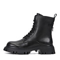 Лаконичные черные кожаные ботинки с высокой шнуровкой. Мягкая натуральная шерсть на подкладке и стельке отлично защищает стопы от холода. Массивная резиновая подошва с протектором обеспечивает надежное сцепление с поверхностью. Пара с надежной шнуровкой и удобной застежкой на молнию. Ботинки гармонично дополнят образы с брюками, джинсами и трикотажными платьями.