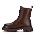 Лаконичные коричневые ботинки из гладкой натуральной кожи. Пара утеплена мягкой натуральной шерстью. Трендовая массивная резиновая подошва гарантирует устойчивость на любых покрытиях. Прочная шнуровка и застежка на молнию, петля на голенище. Ботинки отлично подойдут для длительных прогулок, посещения офиса и повседневнных дел.