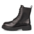 Базовые черные кожаные ботинки с высокой шнуровкой. В качестве утеплителя используется мягкая натуральная шерсть. Трендовая массивная резиновая подошва гарантирует устойчивость на любых покрытиях. Прочная шнуровка и боковая молния. Ботинки отлично подойдут для длительных прогулок, посещения офиса и повседневнных дел.