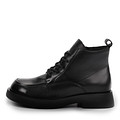 Стильные черные ботинки с верхом из гладкой натуральной кожи. Подкладка и стелька, выполненные из мягкого ворсина, надежно защищают стопы от влаги и ветра. Утолщенная резиновая подошва добавляет устойчивости на любых покрытиях.