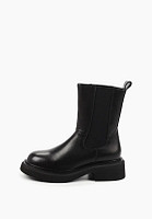 Минималистичные высокие ботинки в стиле челси. Верх выполнен из гладкой натуральной кожи актуального коричневого оттенке. Подкладка и стелька утеплены мягким ворсином. Утолщенная подошва из материала ЭВА отлично амортизирует нагрузку на ноги.