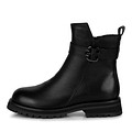 Лаконичные кожаные ботинки в универсальном черном цвете. Модель с удобной скругленной формой носочной частью, обеспечивающей комфортное положение стопы в обуви. Подкладка и стелька, выполненные из мягкого ворсина, надежно защищают стопы от холода в любую погоду. Утолщенная резиновая подошва добавляет устойчивости на любых покрытиях.