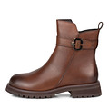 Лаконичные кожаные ботинки коричневого цвета. Модель с удобной скругленной формой носочной частью, обеспечивающей комфортное положение стопы в обуви. Подкладка и стелька, выполненные из мягкого ворсина, надежно защищают стопы от холода в любую погоду. Утолщенная резиновая подошва добавляет устойчивости на любых покрытиях.