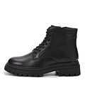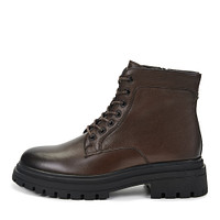 Лаконичные черные ботинки на шнуровке. Материал верха - натуральная кожа. Подкладка и стелька утеплены мягким ворсином. Утолщенная резиновая подошва отличается прочностью и хорошим сцеплением с любой поверхностью.