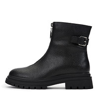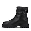 Акцентные черные ботинки с декоративным ремешком в задней части модели. Материал верха - мягкая кожа из спилка с тиснением под крокодила. Подкладка и стелька утеплены натуральной шерстью. Утолщенная тракторная подошва из резины обеспечивает устойчивость на любых покрытиях.