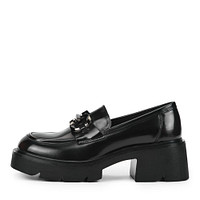 Акцентные черные кожаные лоферы на платформе. Комфорт стоп гарантируют подкладка и стелька, выполненные из мягкой натуральной кожи. Высокая подошва из материала ЭВА поддерживает стопы в оптимальном положении и хорошо амортизирует нагрузку, а также обладает небольшим весом. Модель гармонично дополнит образы с брюками, юбками и джинсами.