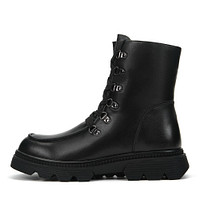 Базовые ботинки с высокой шнуровкой в трендовом шоколадном оттенке. Материал верха - прочная КРС. Пара утеплена натуральной шерстью. Высокая рифленая подошва выполнены из резины и обеспечивает надежной сцепление с любой поверхностью.