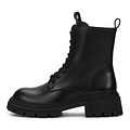 Актуальные черные ботинки с высокой шнуровкой. Верх из натуральной кожи эффективно защищает от ветра и влаги. Подкладка и стелька утеплены мягким ворсином. Тракторная подошва из материала ТЭП поддерживает стопы в оптимальном положении и обеспечивает устойчивость на любых покрытиях.