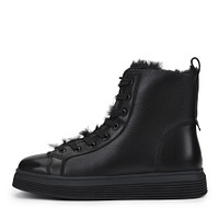 Актуальные высокие кеды в трендовой коричневой гамме. Верх выполнен из практичной натуральной кожи. Подкладка и стелька из меха сохраняют тепло внутри обуви даже в сильный мороз. Высокая резиновая подошва отличается прочностью и хорошим сцеплением с любой поверхностью. Модель фиксируется шнуровкой и удобно застегивается на молнию.