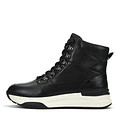 Повседневные высокие кроссовки в универсальном черном цвете. Материал верха - практичная натуральная кожа. Подкладка и стелька утеплены шерстью. Удобная молния ускорит процесс фиксации пары. Контрастная резиновая подошва обеспечит надежное сцепление с любой поверхностью.