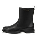 Ботинки чёрного цвета на устойчивом каблуке средней высоты дополнили петлёй сзади. Модель из гладкой натуральной кожи застегивается короткой молнией сбоку. Голенище декорировали золотой надписью Thomas Munz. Материал подкладки и стельки - ворсин. Резиновая подошва повышенной прочности гарантирует устойчивое сцепление с поверхностью независимо от погодных условий.