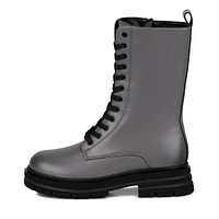 Стильные серые полусапоги с высокой шнуровкой. Верх выполнен из гладкой кожи из спилка. Подкладка и стелька утеплены мягким ворсином. Высокая бордовая подошва из резины с выраженными протекторами обеспечивает устойчивость на любых покрытиях.