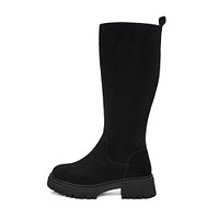 Утонченные черные сапоги на холодный сезон. Верх выполнен из прочного спилка с бархатистой фактурой. Подкладка и стелька утеплены мягкой натуральной шерстью для комфортной терморегуляции стоп. Высокая рифленая подошва из ТЭП отличается легкостью, морозоустойчивостью и хорошим сцеплением с любой поверхностью.