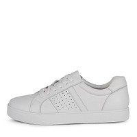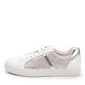 Стильные белые кеды с серебристыми вставками – выбор девушек, ценящих комфорт и красоту. Верх сделан из натуральной кожи (КРС и спилок), вдоль шнурков предусмотрена сквозная перфорация для лучшего воздухообмена. Пара подойдет для повседневной носки, активного отдыха и праздничных выходов.