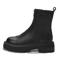 Стильные черные ботинки с акцентной молнией на подъеме. Верх выполнен из бархатистого нубука, подкладка и стелька утеплены мягким ворсином. Высокая подошва из материала ТЭП обеспечивает надежное сцепление с любой поверхностью.