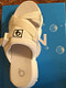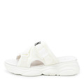 Сабо белого цвета. Верх из мягкого, нежного текстильного материала. Оформлен оригинальными, необычными пересекающимися линиями с застежкой. Удобная плотная подошва с плавными гибкими линиями придает обуви законченность и лаконичность. В таких сабо Вы будете чувствовать в теплую погоду легкость и комфорт.