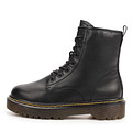 Аккуратные зимние ботинки черного цвета с невысоким голенищем хорошо смотрятся с джинсами и брюками разных фасонов, с юбками и платьями, плотными колготками. Модель выполнена из кожи, утеплена шерстью. Подошва плотная, средней высоты, очень устойчивая. Каблук – невысокий, монолитный. В передней части – шнуровка.