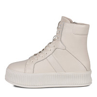 Повседневные черные ботинки выполнены из мягкого спилка с бархатистой фактурой. Пара утеплена натуральной шерстью. Высокая подошва из резины надежно защищает стопы от холода и обеспечивает комфорт при ходьбе. Модель со шнуровкой и застежкой на молнию. Ботинки отлично дополнят образы с брюками, джинсами и платьями.