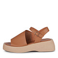 Женские босоножки из натуральной кожи на платформе с открытым носом и пяткой подойдут для повседневной носки, офиса, прогулок и отдыха. Удобная модель на пряжке сочетается с летними платьями и брюками, подходит для подростков и женщин. Верх из мягкой кожи рыжего цвета, стелька — искусственная. Лёгкая полиуретановая подошва устойчива и не скользит.