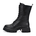 Стильные черные ботинки с тиснением под крокодила. Материал верха - кожа из спилка, которая эффективно защищает ноги от влаги. Подкладка и стелька из натуральной шерсти обеспечивают комфортную терморегуляцию. Высокая подошва из ТЭП с выраженными протекторами отличается легкостью, морозоустойчивостью и хорошим сцеплением с поверхностью. Модель фиксируется шнуровкой и удобной застежкой на молнию.